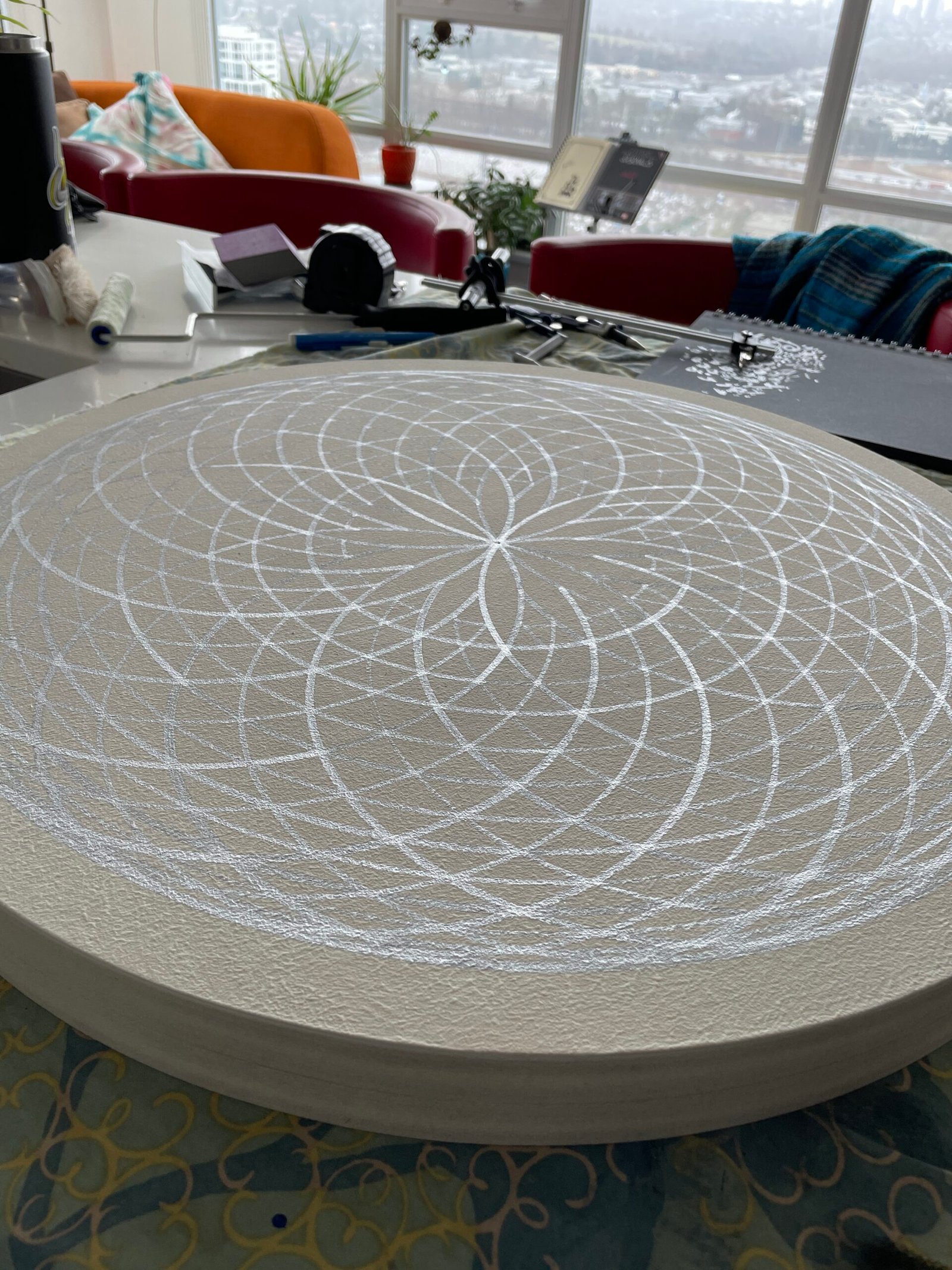 Across this collection of fifteen original mandalas, sacred geometry becomes both practice and prayer—each round panel a portal to spiritual attunement, mindfulness, and the shared wisdom of the collective. Hand‑painted in rich acrylic pigments (with metallic and UV‑reactive accents), these pieces weave universal patterns of harmony that echo from British Columbia to Sweden, Germany, Québec, and beyond. As you gaze into their spirals, star‑tetrahedrons, rosettes, and interlocking lattices, you’re invited into a moment of presence: a pause to reconnect with your own inner compass and the unifying order that underlies all life.